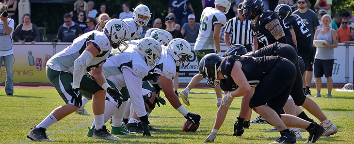Langenfeld Longhorns verlieren das letzte Heimspiel gegen die Bielefeld Bulldogs Das letzte Heimspiel der Langenfeld Longhorns sollte mit einem Sieg gefeiert werden. Zu Gast war das Tabellenschlusslicht Bielefeld Bulldogs. Sehr sicher ging man in das Spiel und schon im ersten Drive holten die Longhorns den ersten Touchdown des Spiels. Mit dem zweiten Touchdown kurz vor dem Ende des ersten Viertels fühlte man sich auf Seiten der Longhorns schon recht sicher. Doch wie ein verletzter Tiger setzen die Bulldoggen zum Angriff an und brachten das Spielgerät Sekunden vor dem Ende in die Endzone der Langenfelder. Auch im zweiten Viertel gaben die Bielefelder nicht auf und so ging man mit einem Stand von 28:21 in die Halbzeitpause. Nach der Pause gab es ein gutes Defense Spiel auf beiden Seiten für die Zuschauer zu sehen. Bei 1 Minute 18 Sekunden im dritten Viertel glichen die Bielefelder den Punktestand auf dem Scoreboard aus. Als es dann 35:35 vor Ende des Spiels stand, sah man sich schon in der Overtime. Doch ein Fehler der Langenfelder brachte Bielefeld ein erneutes First Down. Diese Chance nutzen die Bulldoggen und holten 7 Sekunden vor Ablauf der Uhr den letzten Touchdown des Tages. Im wahrsten Sinne ein spannendes Spiel bis auf die letzte Sekunde. Ein Sieg, den die Bielefeld Bulldogs dringendst brauchten, um den Klassenerhalt zu wahren. Viertelergebnisse: 14:7 / 14:14 / 0:7 / 7:14 Endstand: 35:42 |